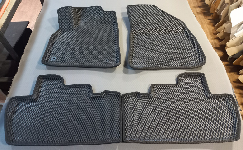 Килими зроблені з зносостійкого полімерного матеріалу EVA. Килимки EvaForma точно повторюють об'єм і контури оригінального покриття підлоги автомобіля, тому дозволяють забезпечити надійний захист салону від води, бруду та пошкоджень.