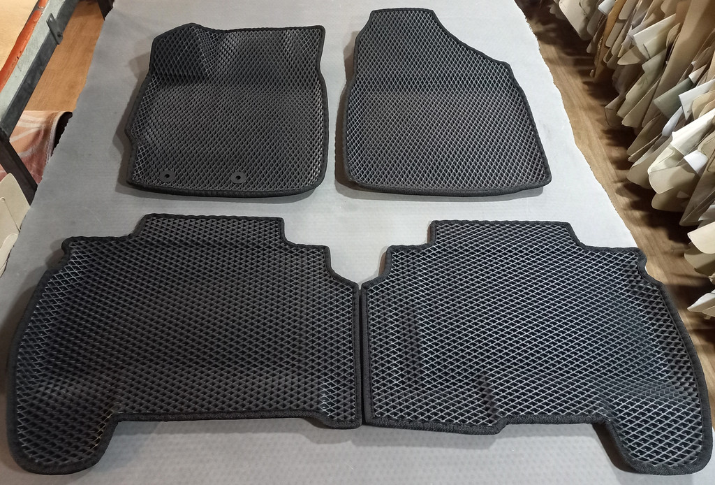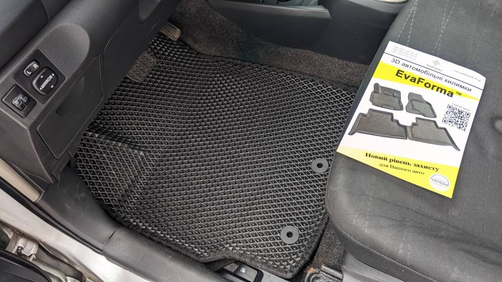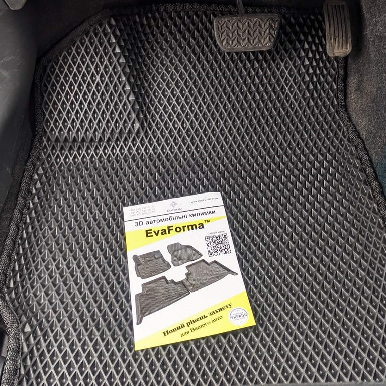 Килими зроблені з зносостійкого полімерного матеріалу EVA. Килимки EvaForma точно повторюють об'єм і контури оригінального покриття підлоги автомобіля, тому дозволяють забезпечити надійний захист салону від води, бруду та пошкоджень.